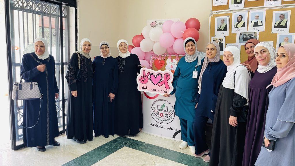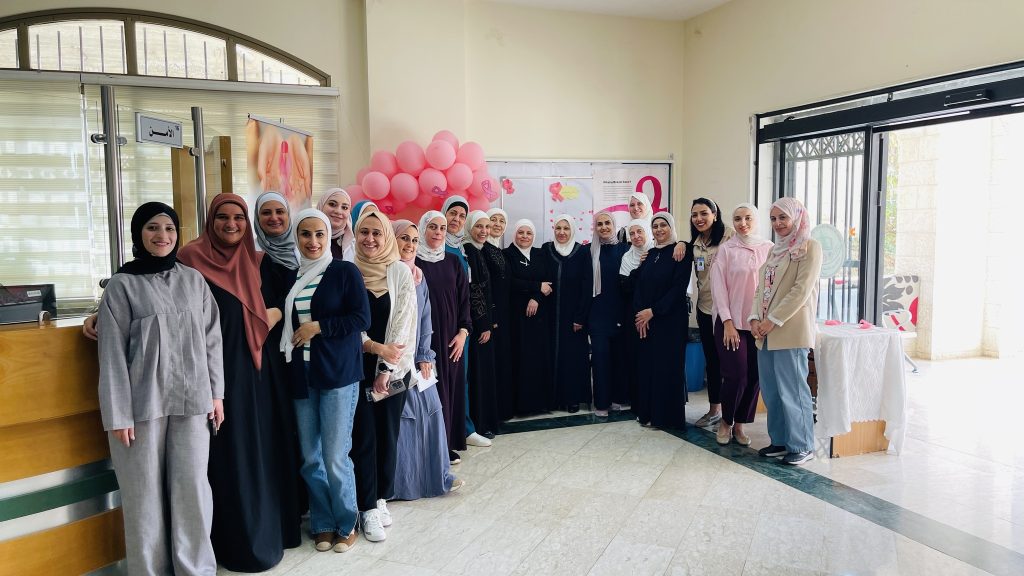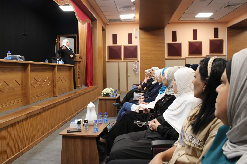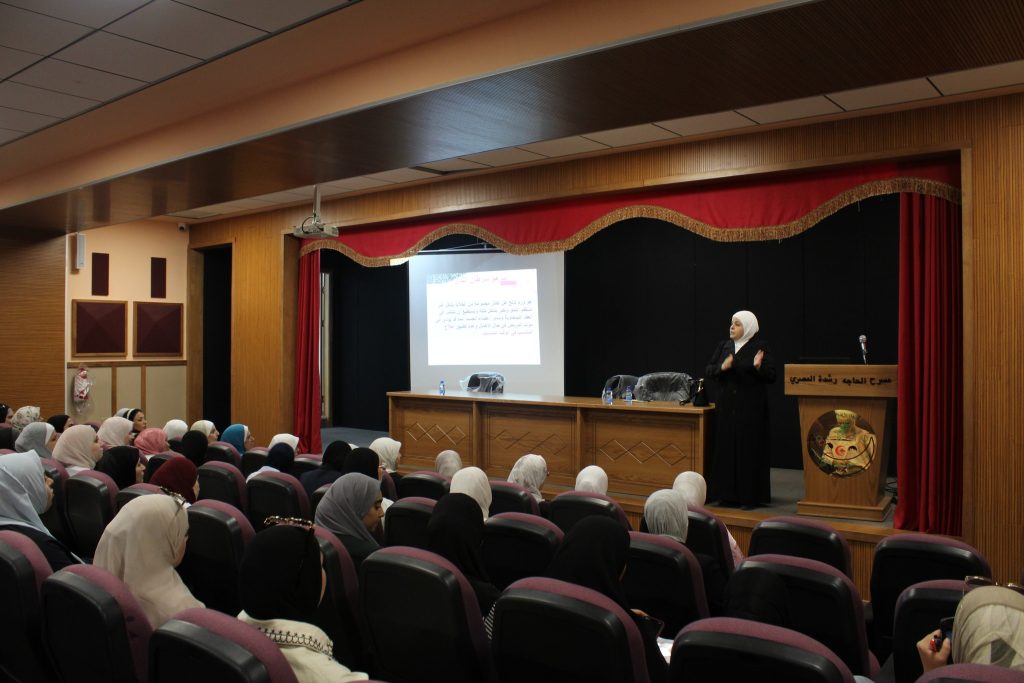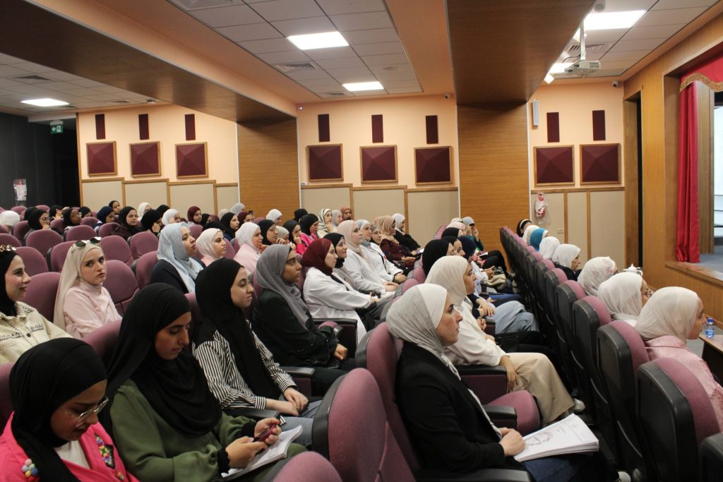 استضافت الكلية أ. خلود نزال من قسم التثقيف الصحي – مديرية صحة نابلس في لقاء تثقيفي لموظفات مؤسسات جمعية الاتحاد النسائي العربي في مسرح الحاجة رشدة المصري – كلية العندليب