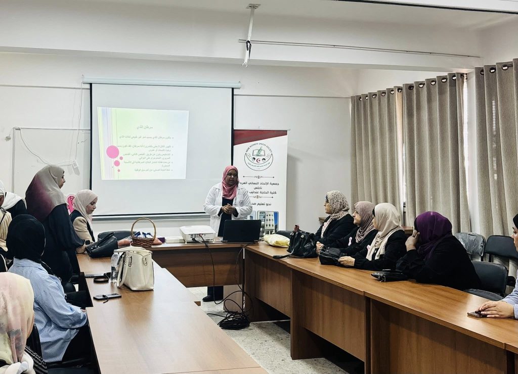 عقدت الكلية لقاء تثقيفي نفسي لنساء جمعية مركز نسوي عسكر، تضمن اللقاء توضيح أهمية الكشف المبكر لسرطان الثدي و طريقة الفحص الذاتي